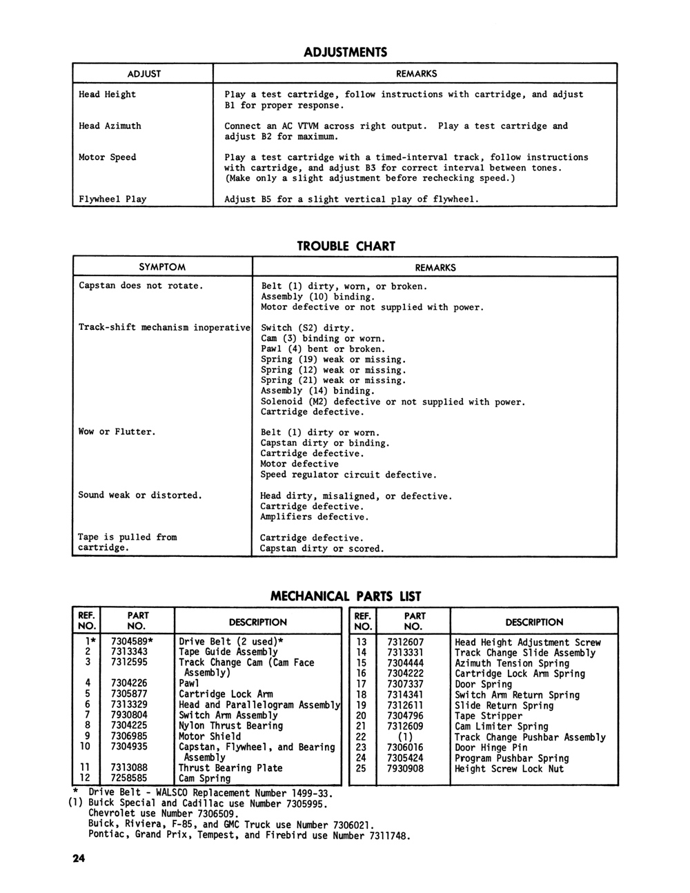 1971 GM 8-Track Tape Player Service Manual